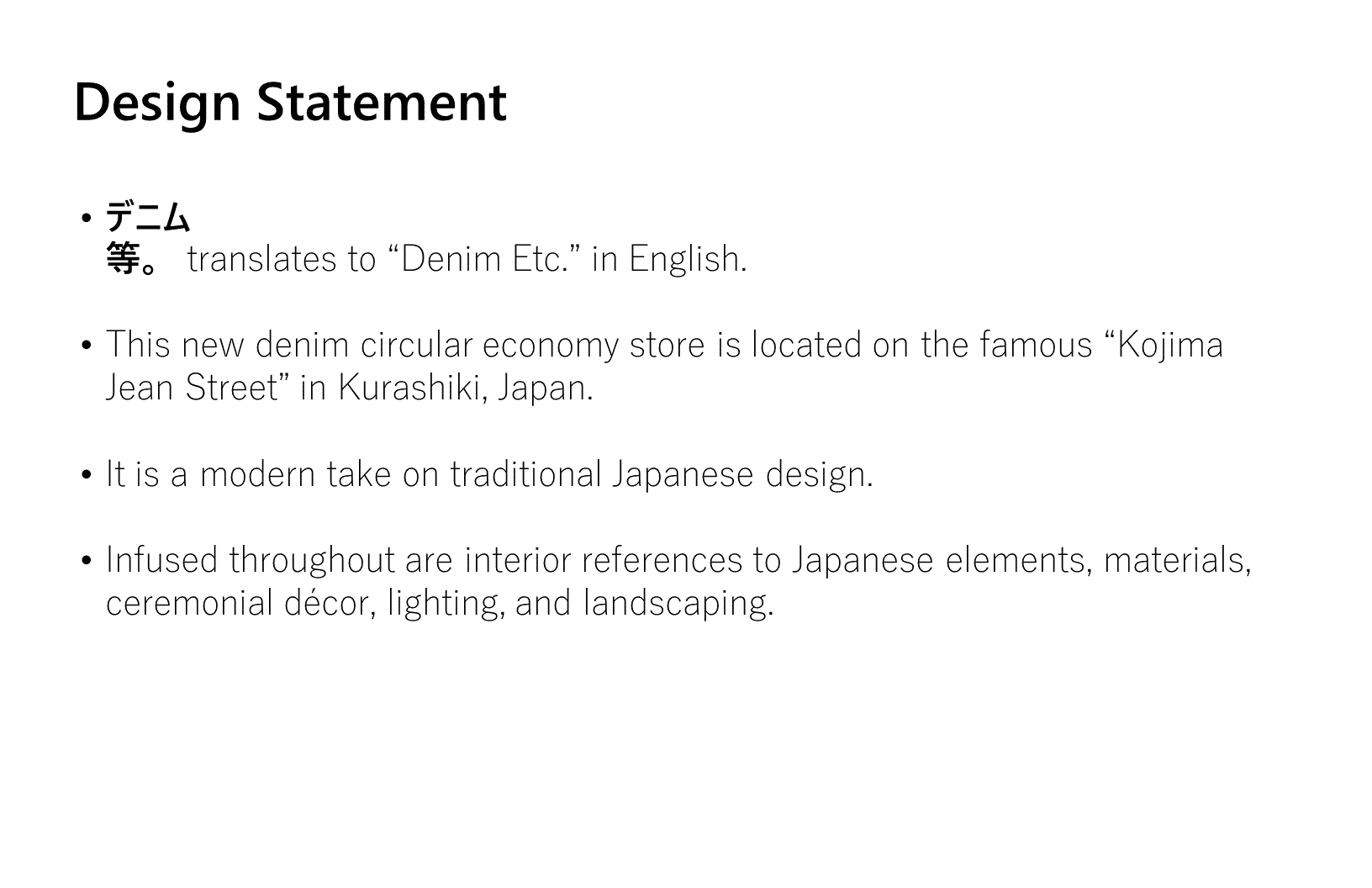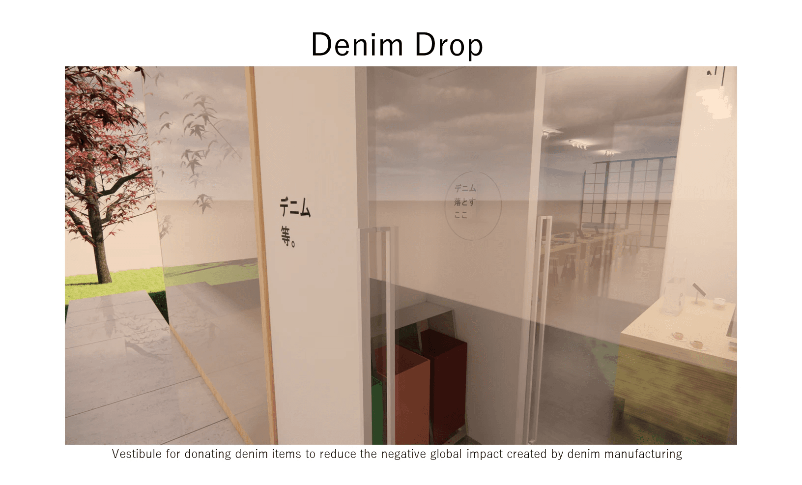 "DENIM ETC." is one of the projects featured at JS-D®, representing an architectural exploration into the world of sustainable denim. The design unfolds through a series of interconnected zones: the Connect Zone, where traditional tatami mats offer a space for engagement and display; the Learn Zone, a central hub for imparting knowledge on eco-friendly practices; and the Make Zone, a dedicated area for the craft of denim tailoring and repair. Each space is an integral part of the cohesive story of responsible fashion.